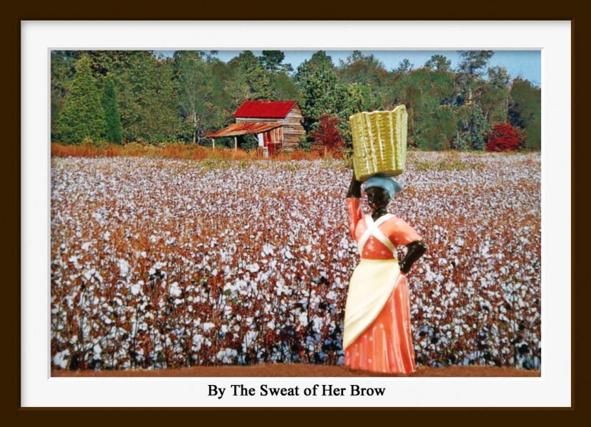 Dorcas Washington leaving the field where she and others on the plantation have spent their day gathering the industrial "fuel" for textile mills from Lowell, Massachusetts to Manchester, England
