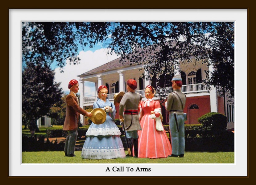 Captain Ravenal is greeted by George Berkeley and his two sisters Melanie and Olivia. He has come to tell the family that the Confederate States of America and the United States are now at war. On April 12th Confederates attacked and captured Fort Sumter in Charleston,S.C. On April 15th, President Lincoln issued a proclamation to raise a militia of 75,000 men. South Carolina had been the first Southern state to secede from the Union on December 20, 1860. Captain Ravenal is calling for a regimental muster of the 2nd South Carolina Volunteers, of which the young John Berkeley is a member.