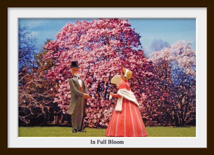 Colonel Archibald Rutledge, a proud veteran of the Mexican War and frequent guest at the plantation, flirts with Miss Olivia Berkeley amidst the fragrant Spring blossoms.