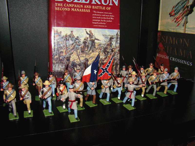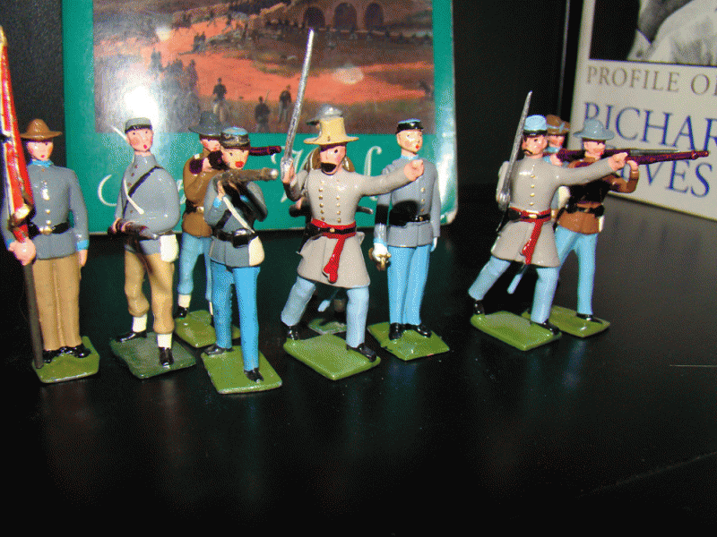 Proof of how well Wm. Hocker Confederate Officers (from set #s 369 & 371) match old Britains Confederate toy soldiers.