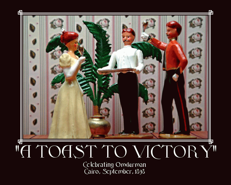 Lt. Geoffrey Montague and his sister Winifred toast the recent British Victory at Omdurman, where their father Col. Harold "Harry" Montague was an officer with the Guards.