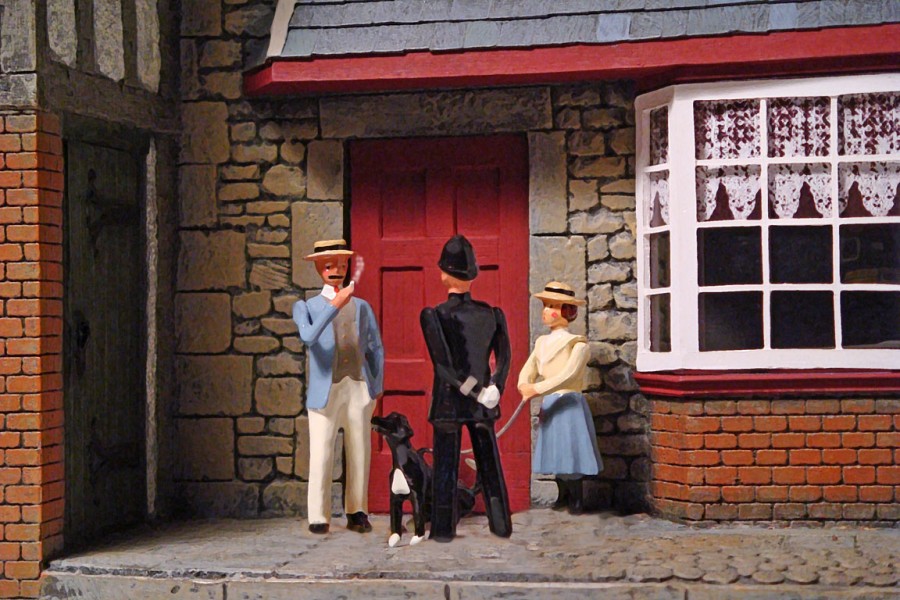 "On Holiday"Randy Bond - 19May11 11:40AMGeorge Wigg, a cotton buyer from Liverpool, has taken his family on holiday to the English countryside where they are staying at a local inn. He and his daughter Fanny are taking their dog Wellington for a walk and have stopped to ask the local constable for directions.