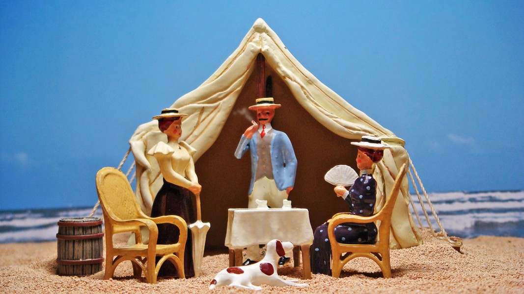 The scene was inspired by Winslow Homer's painting The Tent (Summer By The Sea) painted at East Hampton in 1874.