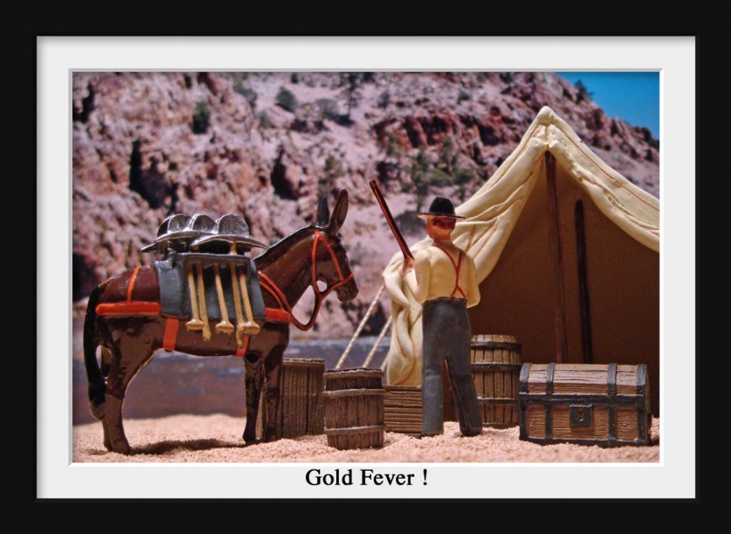 "Gold Fever"Randy Bond - 3Jul11 8:56AMAfter the discovery of gold at Sutter's Mill along California's American River in 1848 there was a mad rush of easterners to the West seeking their fortunes. Among those was Joseph Ives and his brothers Frank and Nathaniel who sold their general store in Poestenkill, NY and used the money to head West in the 1850s and join in the frenzy. Joseph is keeping an eye on their camp along the banks of the American River while his brothers fish downstream for their supper.