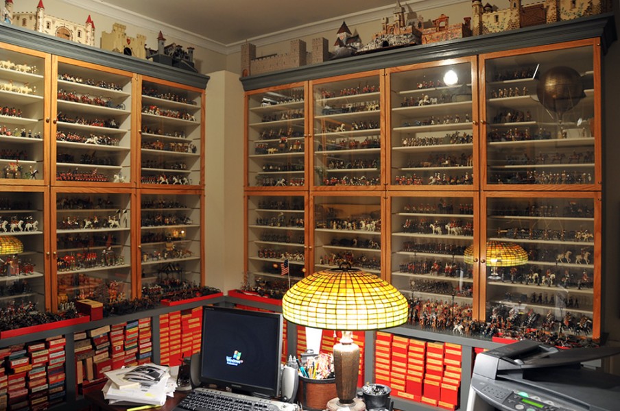 Yes, by placing pillows under the door and opening it slowly. Only a few figures were damaged when they struck each other. Of course, there are 50 toy soldier cabinet doors in the house, so it has taken quite a bit of time to put all the contents right. In the 'Hocker Room' ...