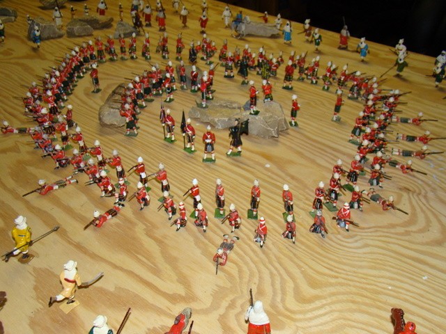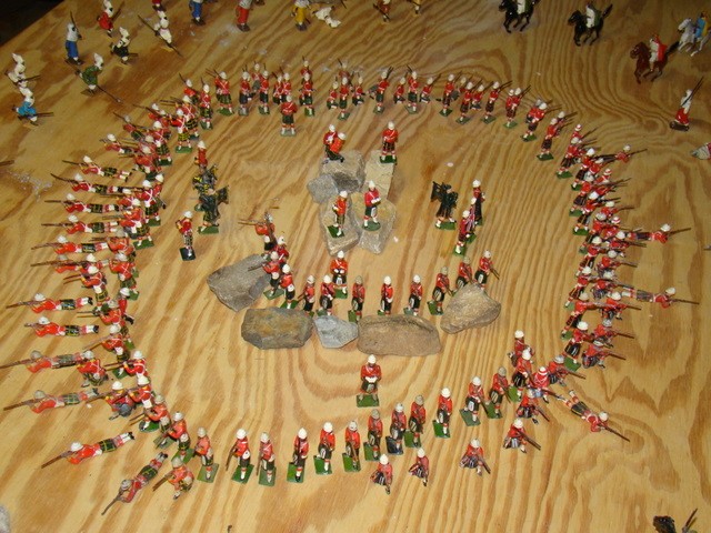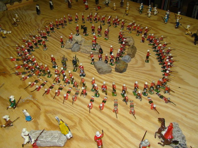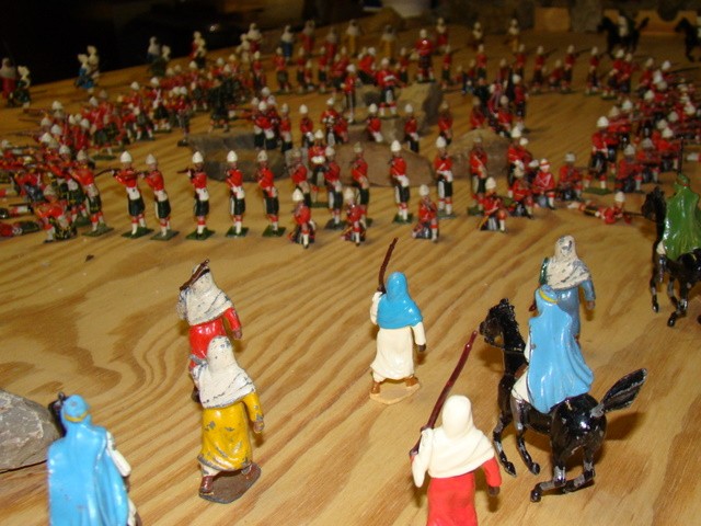 Britains Highlanders with sun helments in action Pt 2Alexander Jordan - 19Nov11 2:14PMInspired by the photograhs in an article of an old Smithsonian Magazine my Dad saved for me as child featuring the old Malcolm Forbes Toy Soldier collection once displayed in Morocco, I thought it would be fun recreate the photo of the different Britains Highlanders regiments forming a circle in the sand/desert for defense.