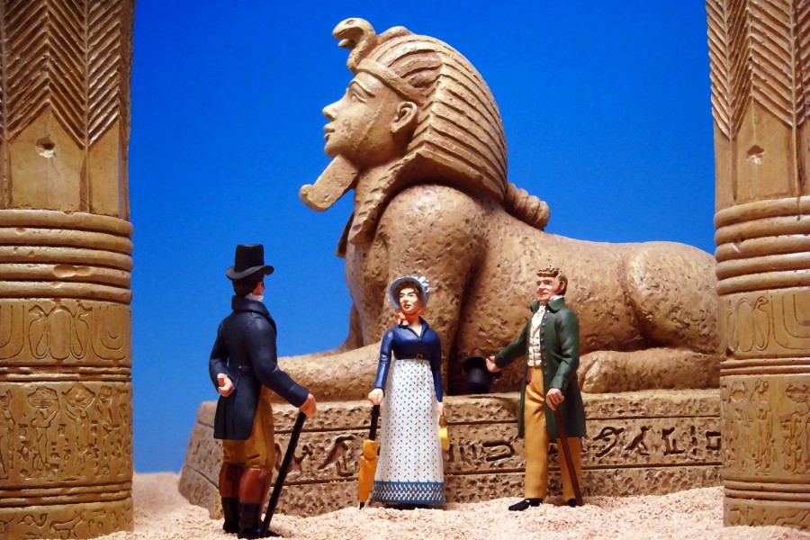 Jane Austen in EgyptRandy Bond - 30Jan12 11:30AMAs many already know, I like doing 19th C scenes with civilians. I have been admiring the W. Britain Jane Austen series but had not figured out how to use them. Since I am collecting the K&C Napoleon in Egypt series which so far deals with the archaeological and scientific aspects of the expedition, I realized that that some of the JA (Napoleonic era) figures could be used as stand ins for the 167 civilian "Savants" that accompanied Napoleon to Egypt and brought back much new information to France as a result. The JA figures have all been retired now and so I grabbed 3 of them last week before they are all gone.