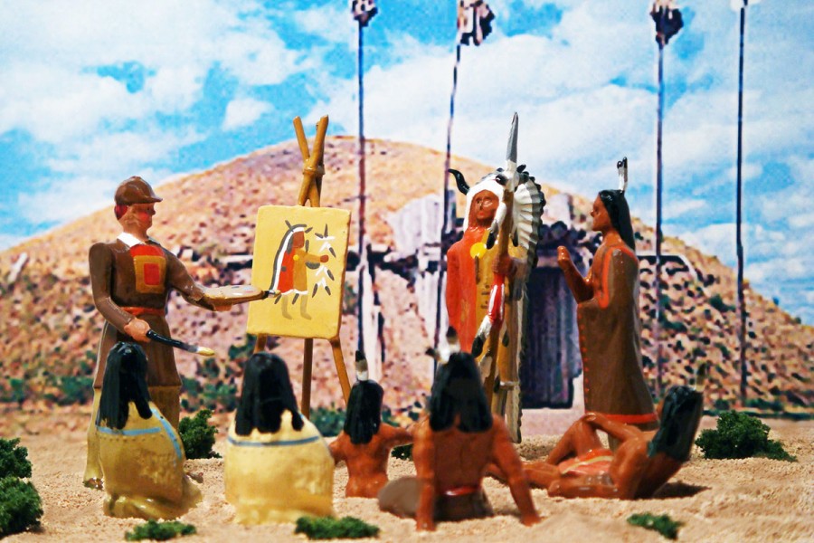 Here is the same scene utilizing one of the Mandan earth lodges as a backdrop.