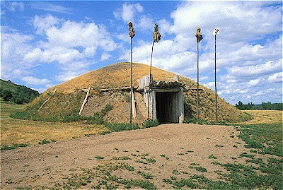 Among the tribes he visited were the Mandans of North Dakota. They lived in villages of circular wood frame and earthen lodges or when on the move used buffalo hide tipis.