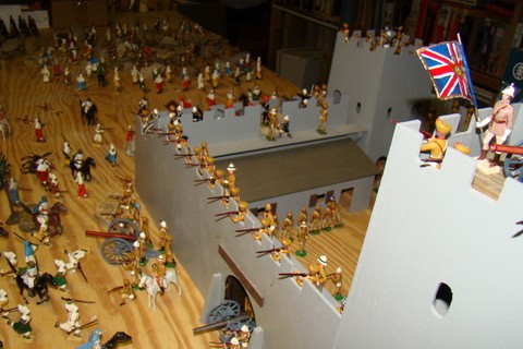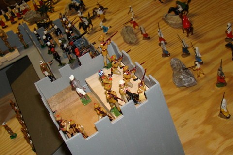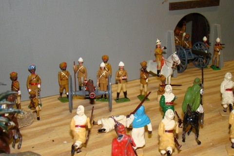Queen's Own Corps of Guides Fort under attack! Part 1Alexander Jordan - 2Feb13 4:57PMPic #1 I always was fascinated by the Queen's Own Corps of Guides (both the real British Indian Army Regiment and Mr. Hocker's set #8) especially after watching the HBO mini-series "The Far Pavilions" with my parents as a boy in the mid-1980's. My brother & I used recreate the "Kabul Residency under attack!" with our extensive Britains Deetail toy soldier collection and our Dad would help too! Anyhow, over the past 10 years I've collected, bought, ordered, special-ordered, painted & re-painted (only the Britains & Britains-reproductions were painted/repainted) all of these Corps of Guides toy soldiers shown. A true "labor of love" and why we continue to collect and display our toy soldiers!