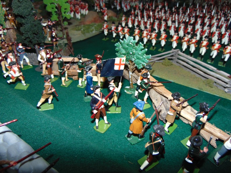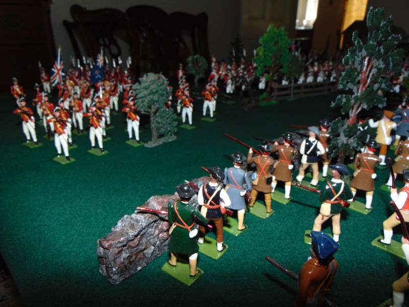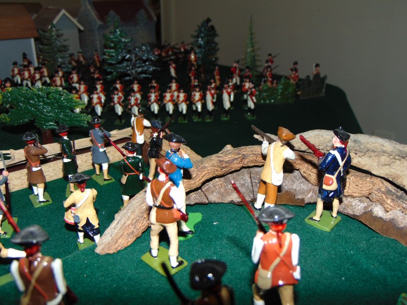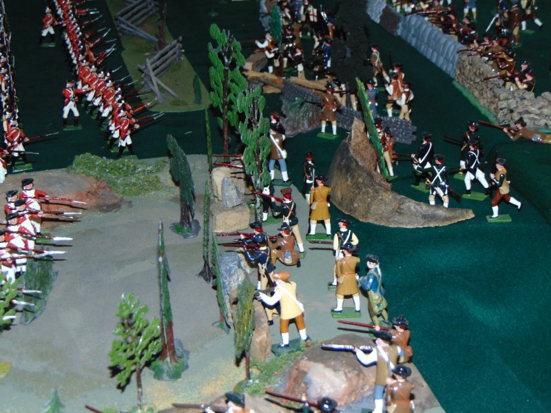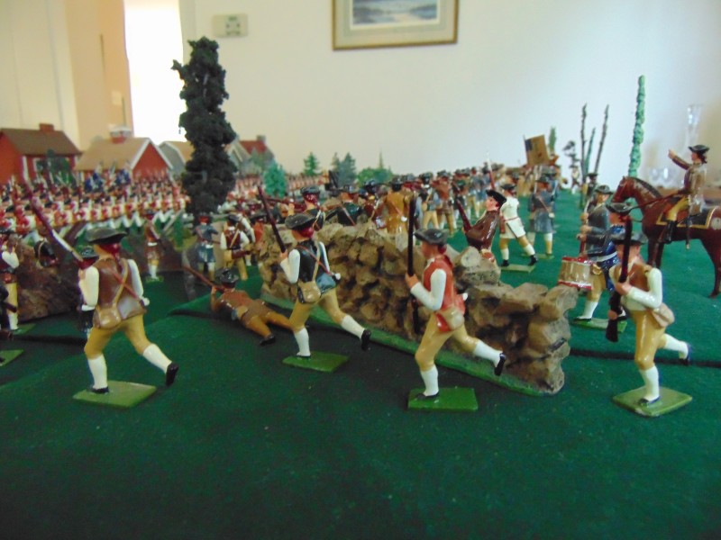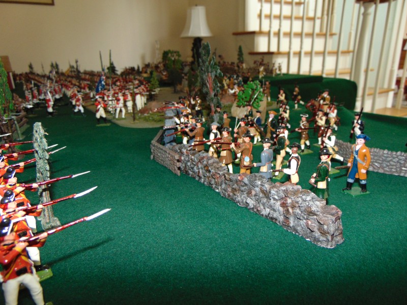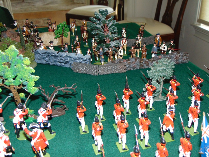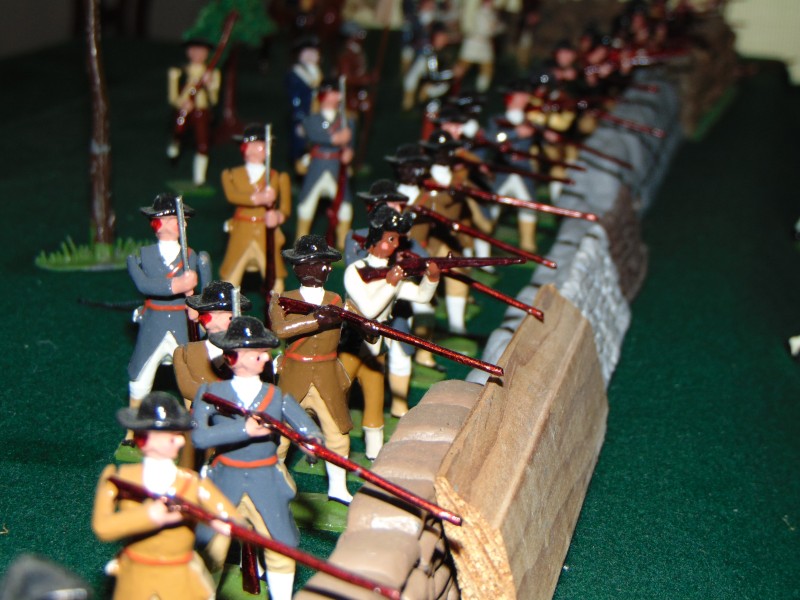 British Light Infantry vs. Minutemen along the stone wall leading to the Bay/shoreline