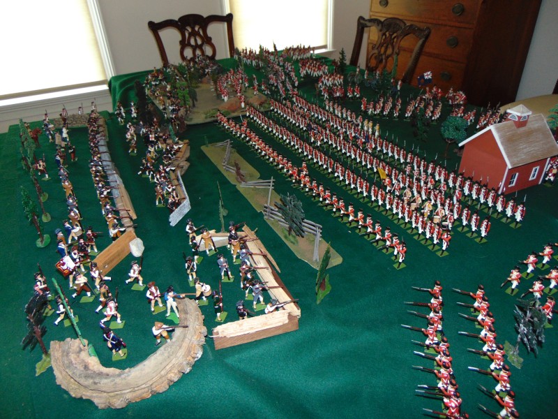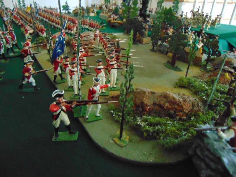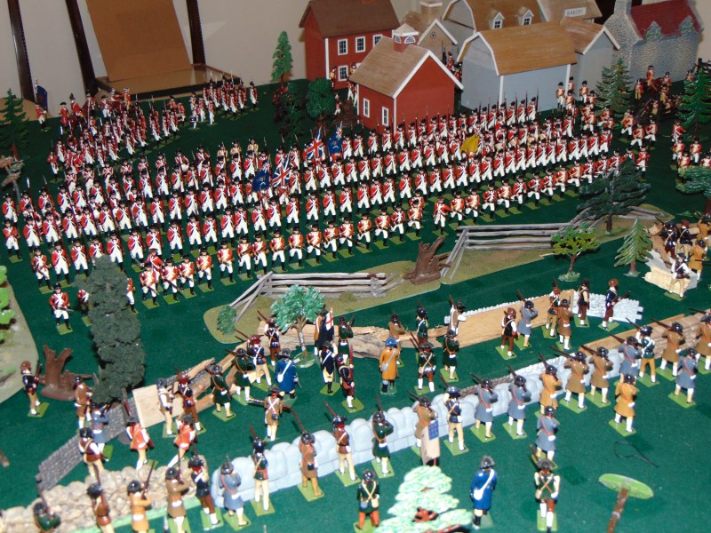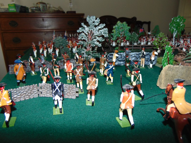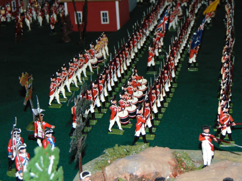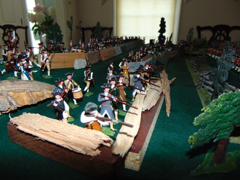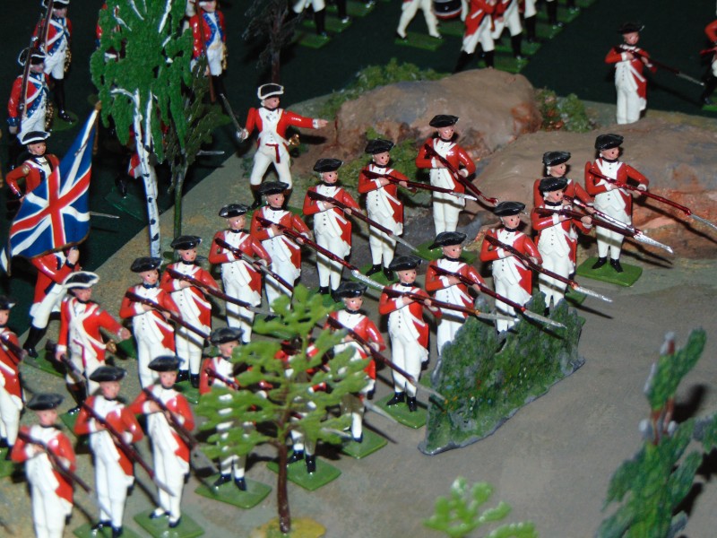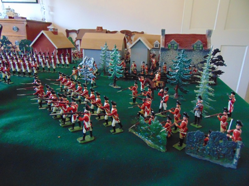 British Light Infantry vs. Minutemen along the stone wall leading to the Bay/shoreline