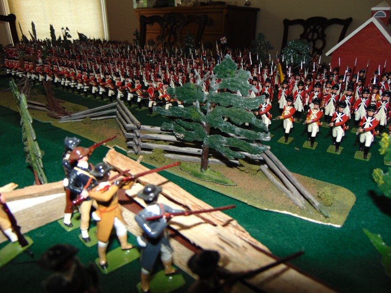 British Marines advancing/firing at Minutemen defenses