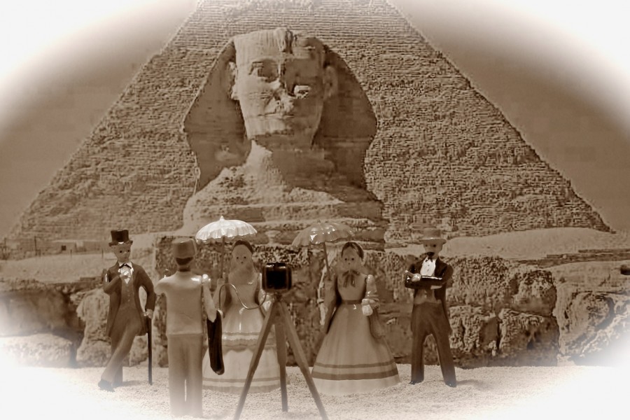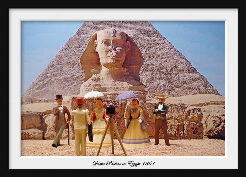 "Dixie Pashas 1861"Randy Bond - 13May10 7:06PMSeveral months before the first shots of the American Civil War were fired, two cotton planters from South Carolina tour the wonders of Egypt with their wives. A local photographer snaps their photograph as a souvenir to take back home to a soon to be divided nation. Ironically during the war, Egyptian cotton would replace that of the American South as the staple for the English textile mills of Manchester.